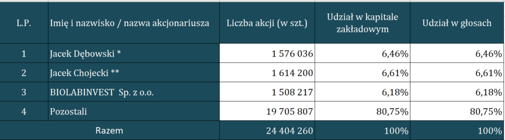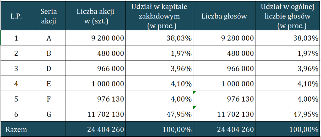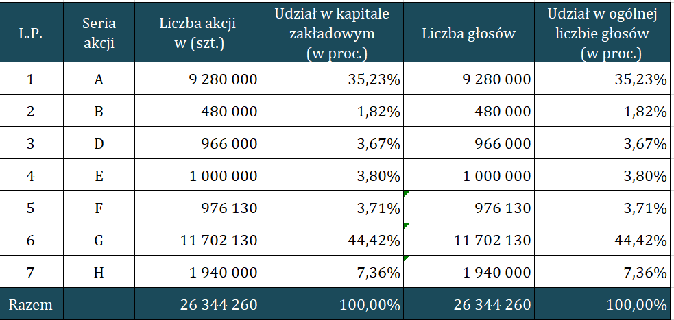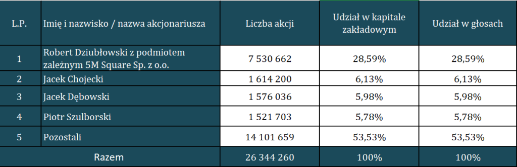 Struktura akcjonariatu Emitenta ze wskazaniem akcjonariuszy posiadających co najmniej 5% głosów na walnym zgromadzeniu